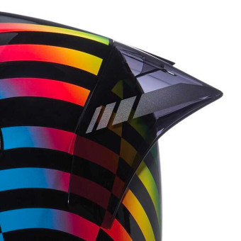 - Ecran ultra large : incolore traité anti-rayure des deux côtés, avec mécanisme de basculement permettant une plus grande extension de l'aire couverte par le Pinlock®, limitant les risques de buée à l'intérieur du casque ainsi que d'ouverture accidentelle de l'écran