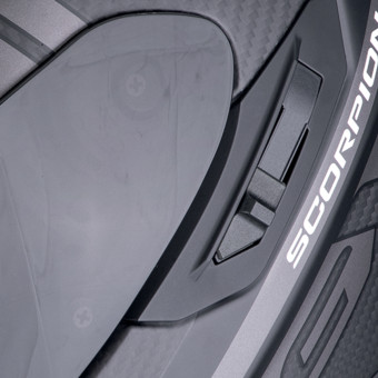 Incontournable, le système Airfit Concept est bien évidemment présent. L'Airfit Concept permet au pilote de personnaliser l'ajustement de son casque grâce à ses rembourrages de joues montés sur coussins d'air réglables avec atténuation sonore supplémentaire, une exclusivité Scorpion !