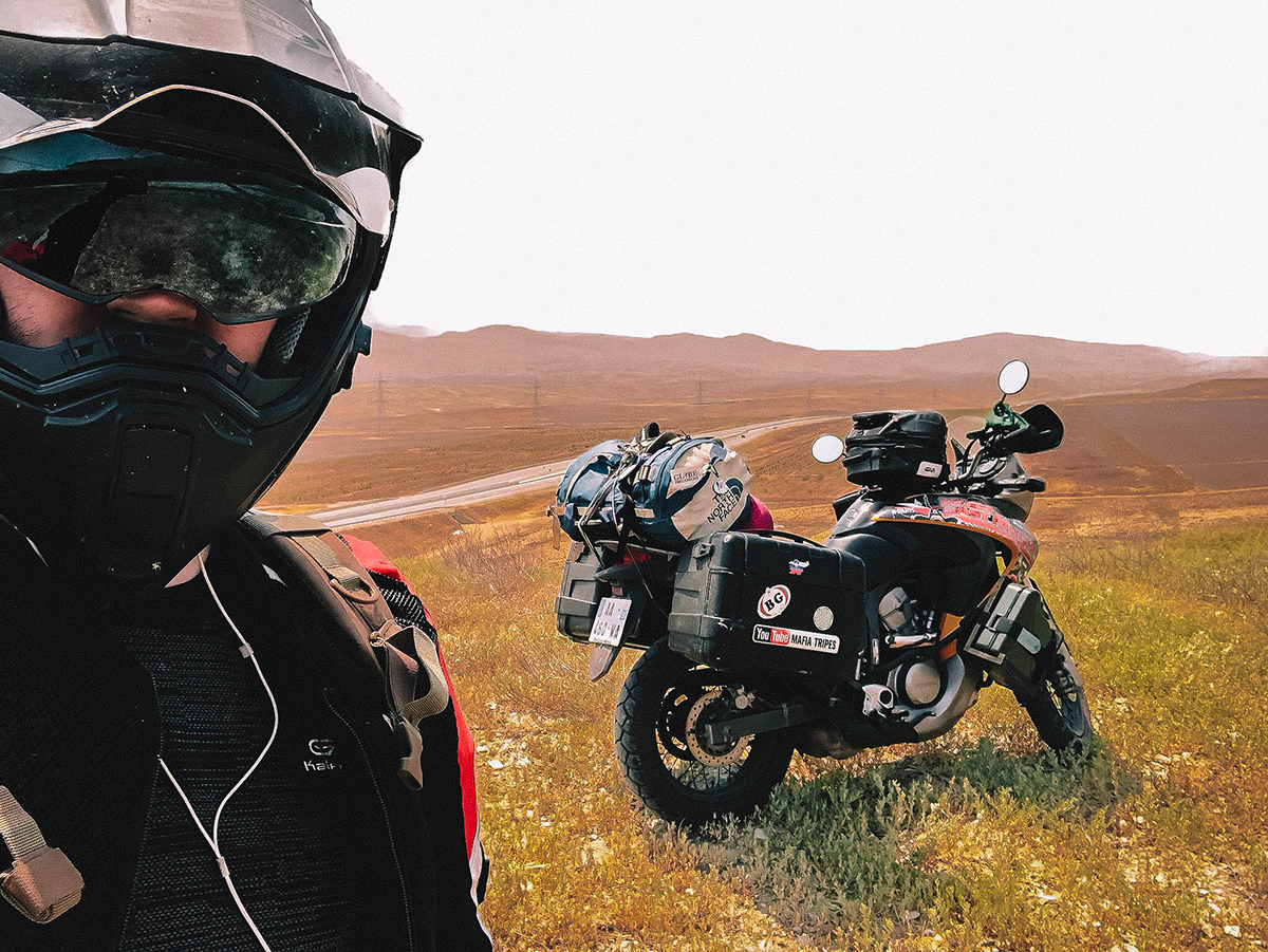 Une fois arrivé à la frontière je suis anxieux. J’arrive en face d’une première ligne de voitures. Un vieillard me fait signe de passer devant tout le monde, je suis désormais en face des premiers militaires qui me demandent mes papiers. Ils me regardent, et comme d’habitude mon nom les fait rire car il ne colle pas à ma tête, qui plus est j’ai désormais une grosse barbe inexistante sur la photo de mon passeport. L’un d’eux me fait une blague sur mes bottes moto et puis me dit d’avancer avec un grand sourire, je lui rends la pareille.